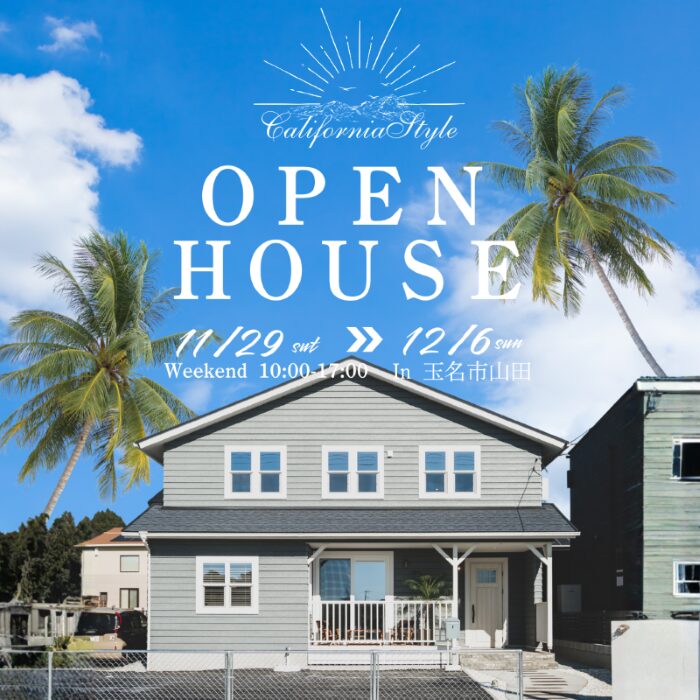 イベントは終了しましたOPEN HOUSE【完成見学会】Snow whiteのカリフォルニアスタイルハウス 2025/11/22-2025/12/8