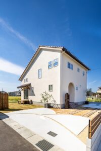 白壁にテラコッタ屋根がかわいいナチュラルなお家