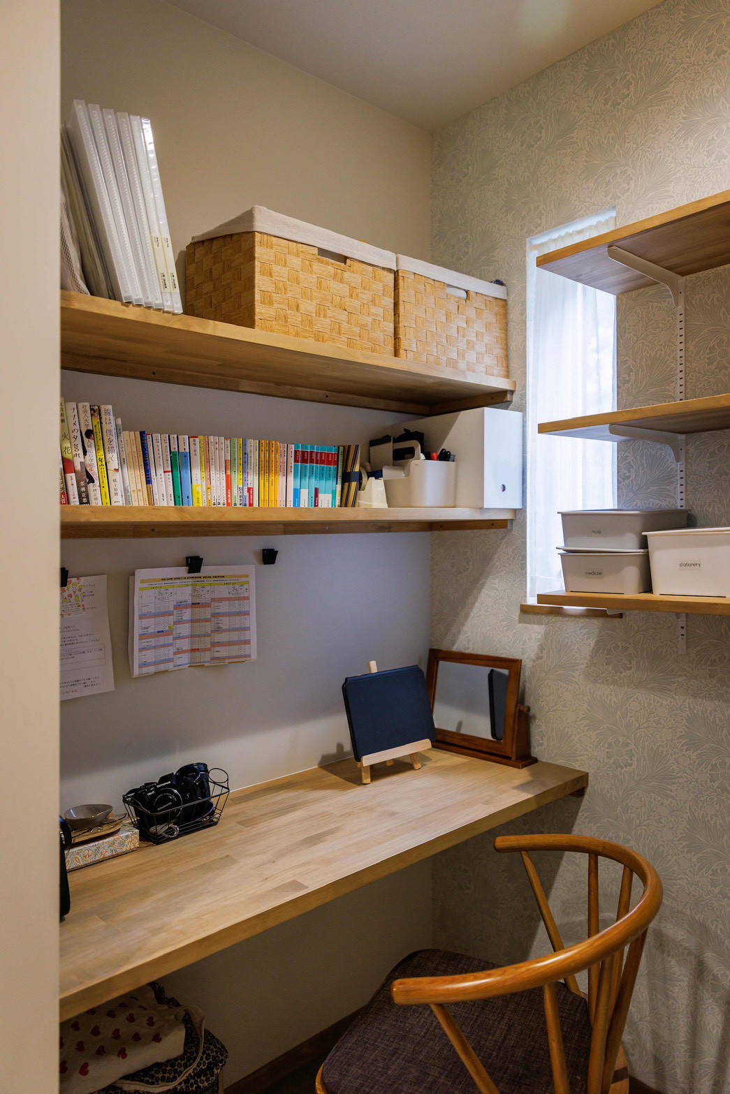 窓から差し込む柔らかな光と、お気に入りの本や小物に囲まれた空間で、クリエイティブな時間が生まれます。