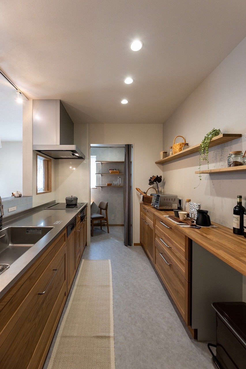 キッチンカウンター越しに広がるオープンな視界が、料理中も家族との会話を弾ませ、心豊かな食事の時間を演出します。 -