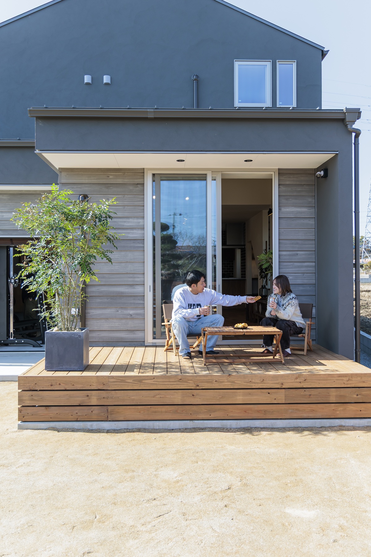 外壁も完成しました。ブラック×グレーでシックな感じに仕上がっています。